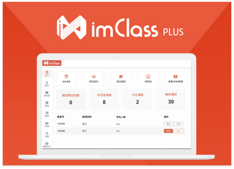 ImClass Plus為(wèi)培訓機$← ♥(jī)構提供:市(shì)場(chǎng)推廣、營銷獲客、線索管理(™±•lǐ)、在線教學、口碑傳播、學員(yuán)管理(lǐ)、教務運營、★∞✔ 數(shù)據分(fēn)析的(de)閉環SaaS系統查看(kàn)詳情
